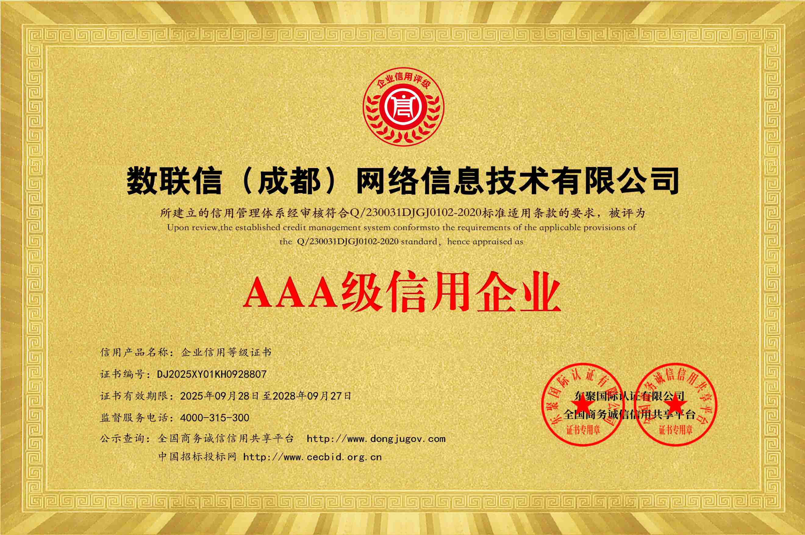 公司全称:数联信(成都)网络信息技术有限公司