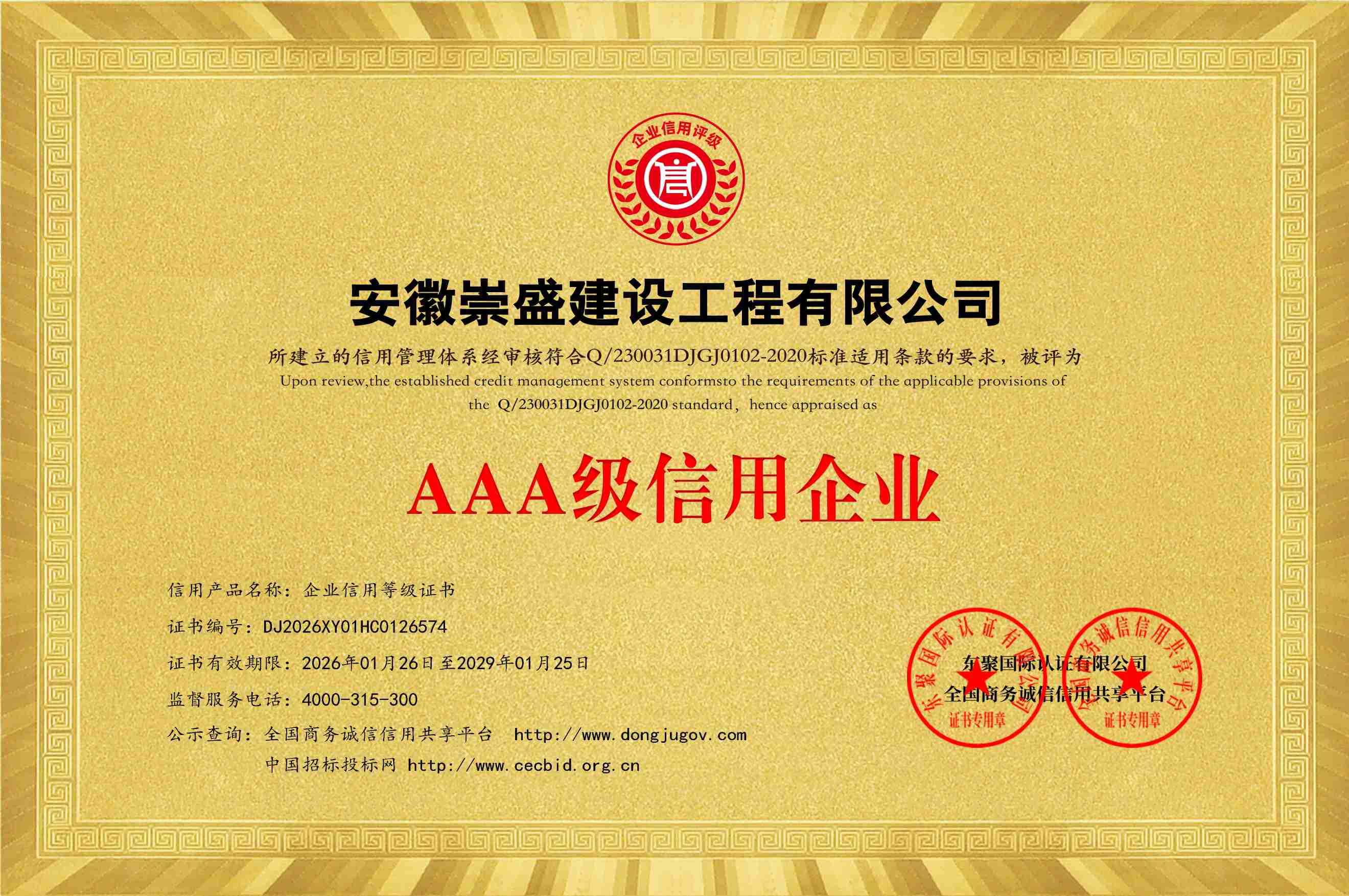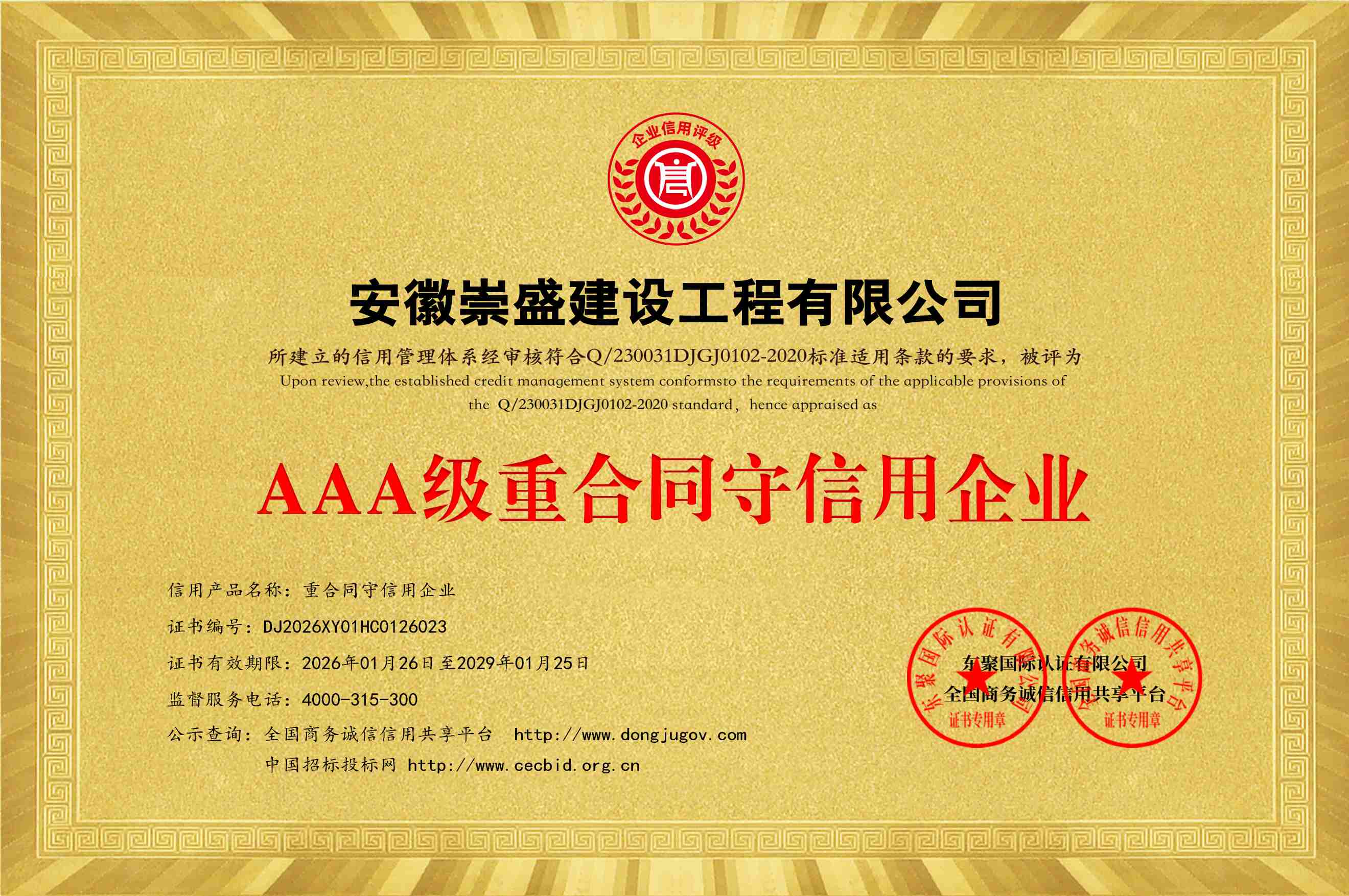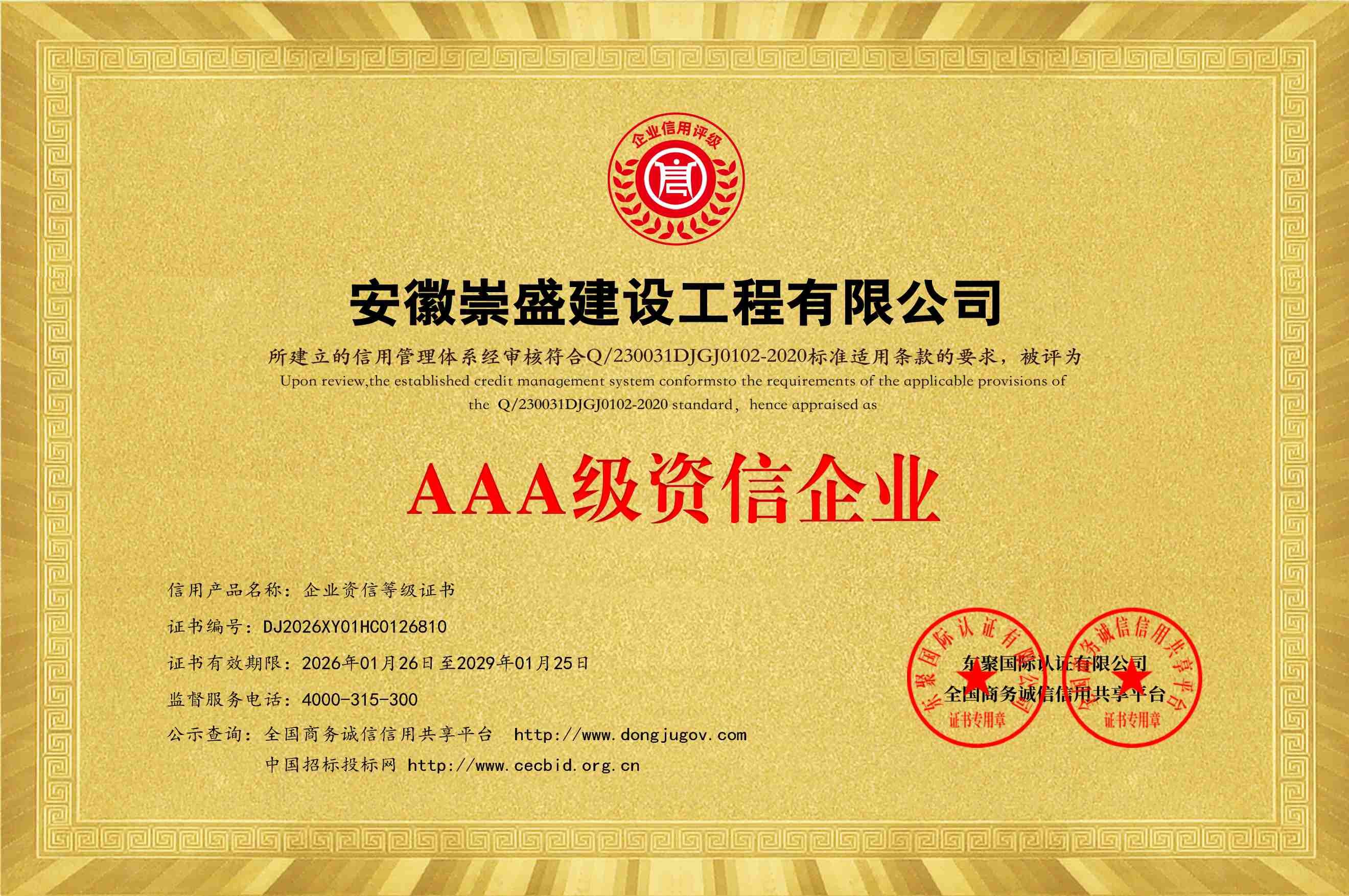 公司全称:安徽崇盛建设工程有限公司