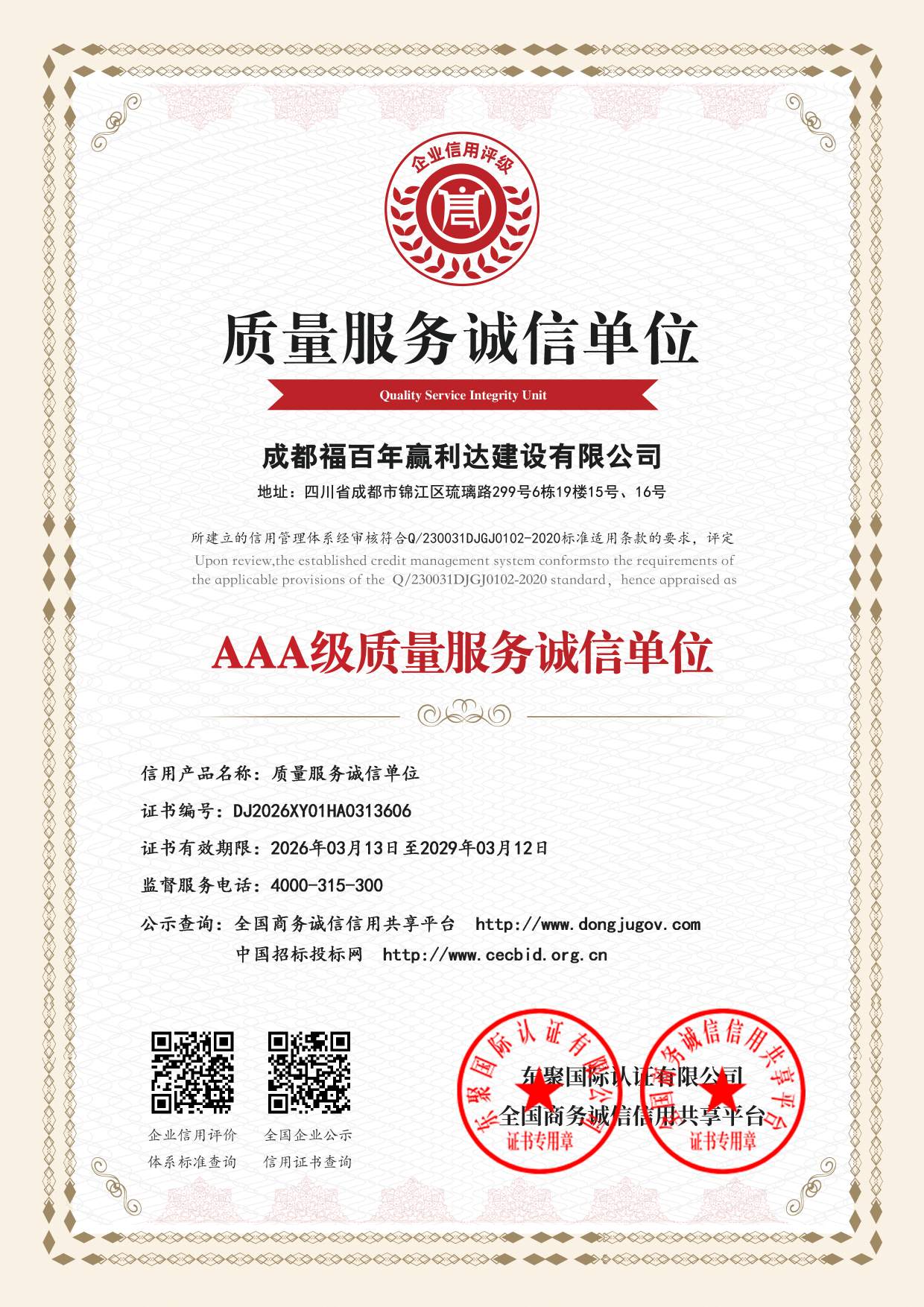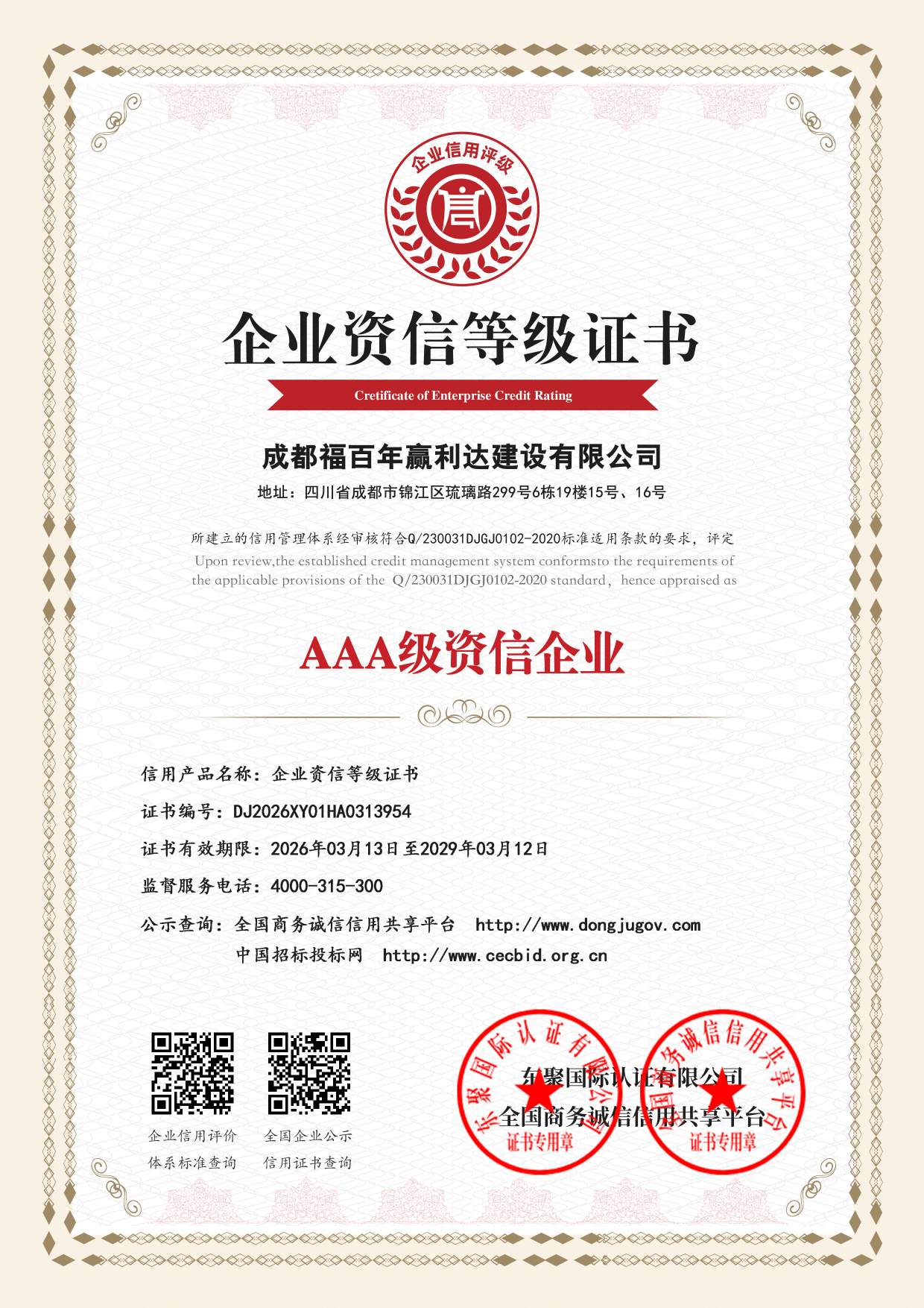 公司全称:成都福百年赢利达建设有限公司