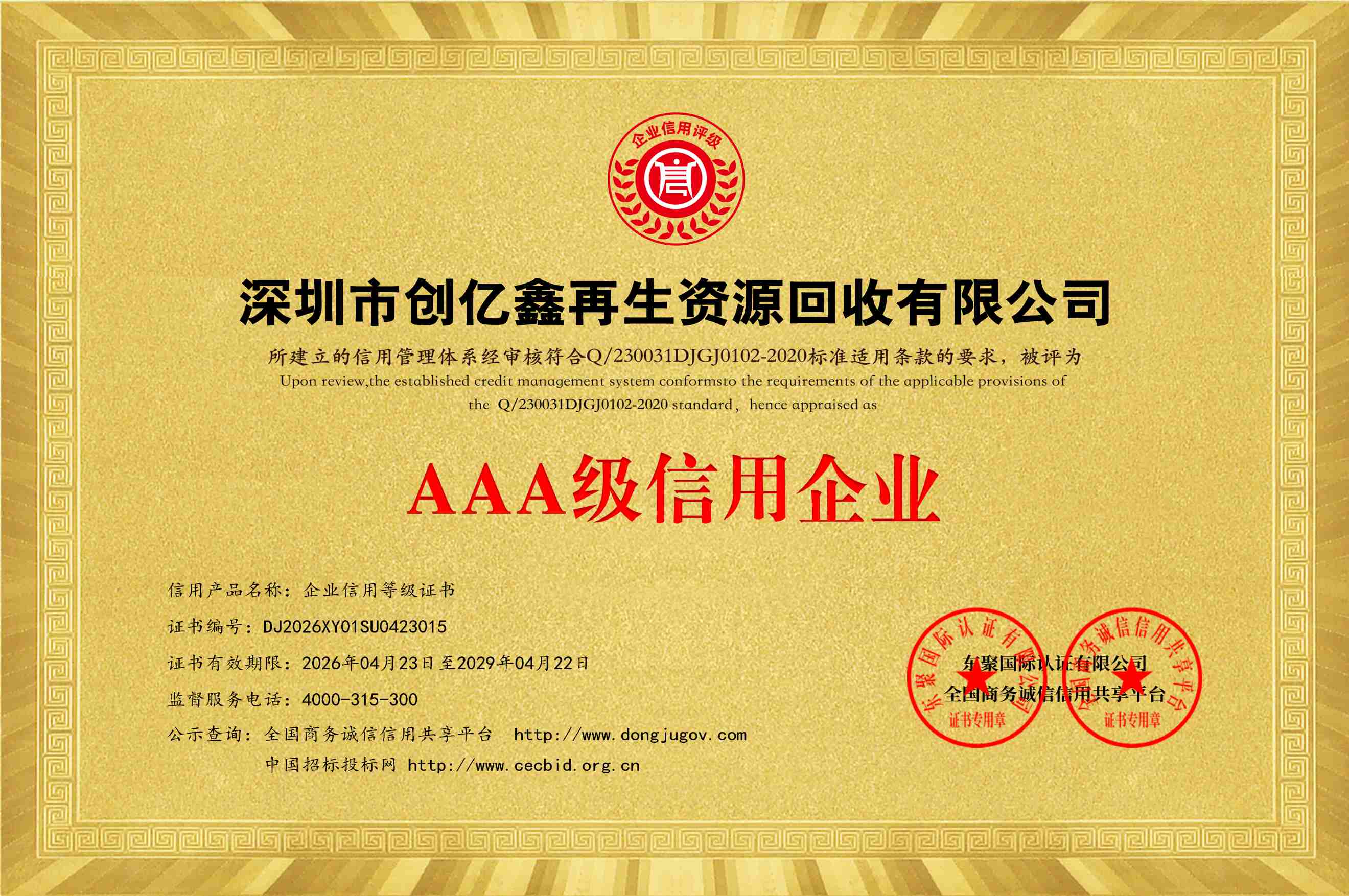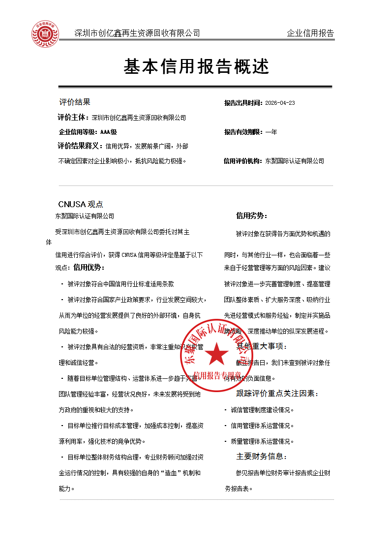 公司全称:深圳市创亿鑫再生资源回收有限公司