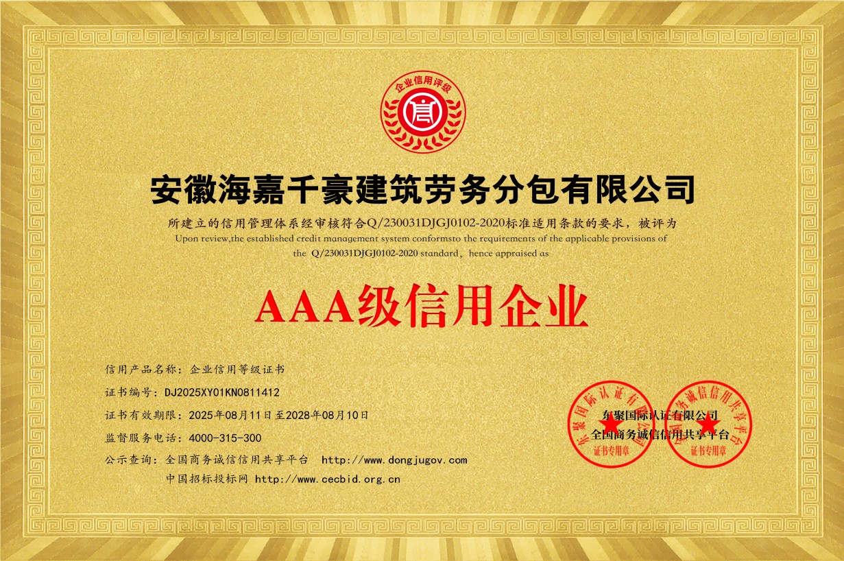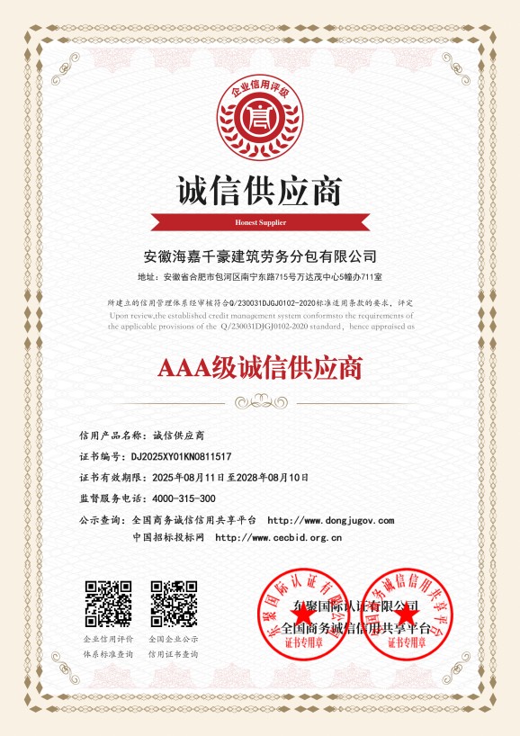 公司全称:安徽海嘉千豪建筑劳务分包有限公司