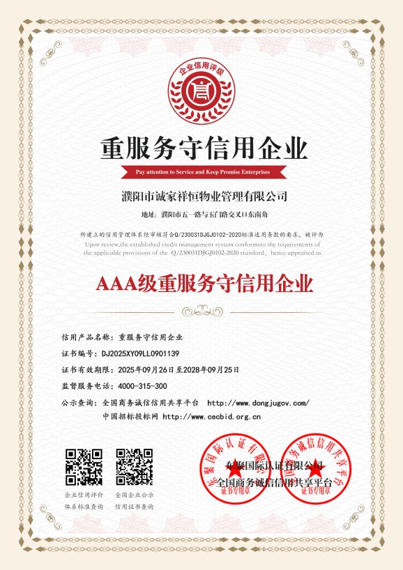 公司全称:濮阳市诚家祥恒物业管理有限公司