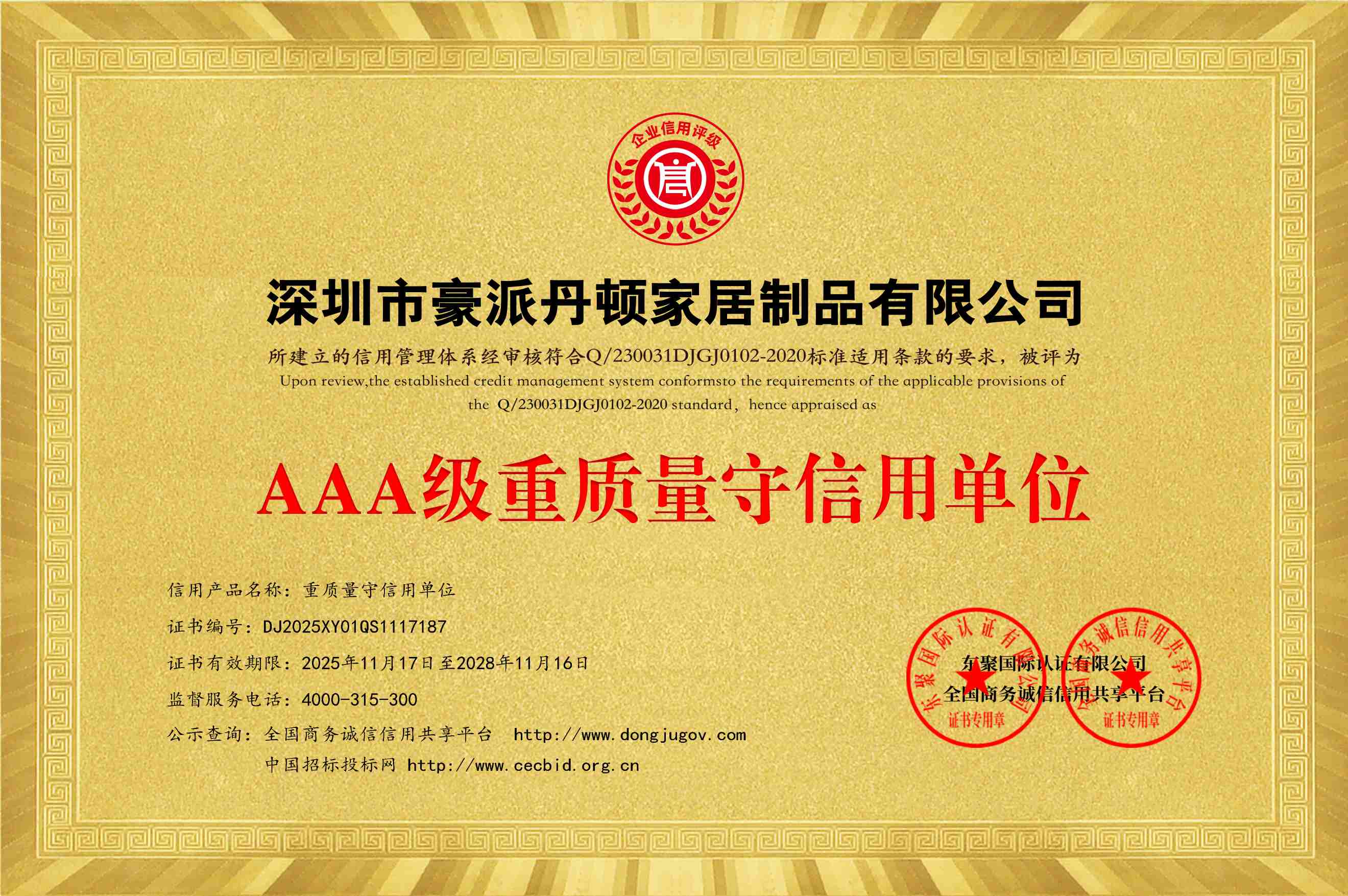 深圳市豪派丹顿家居制品有限公司-单位荣誉